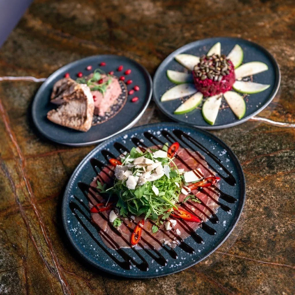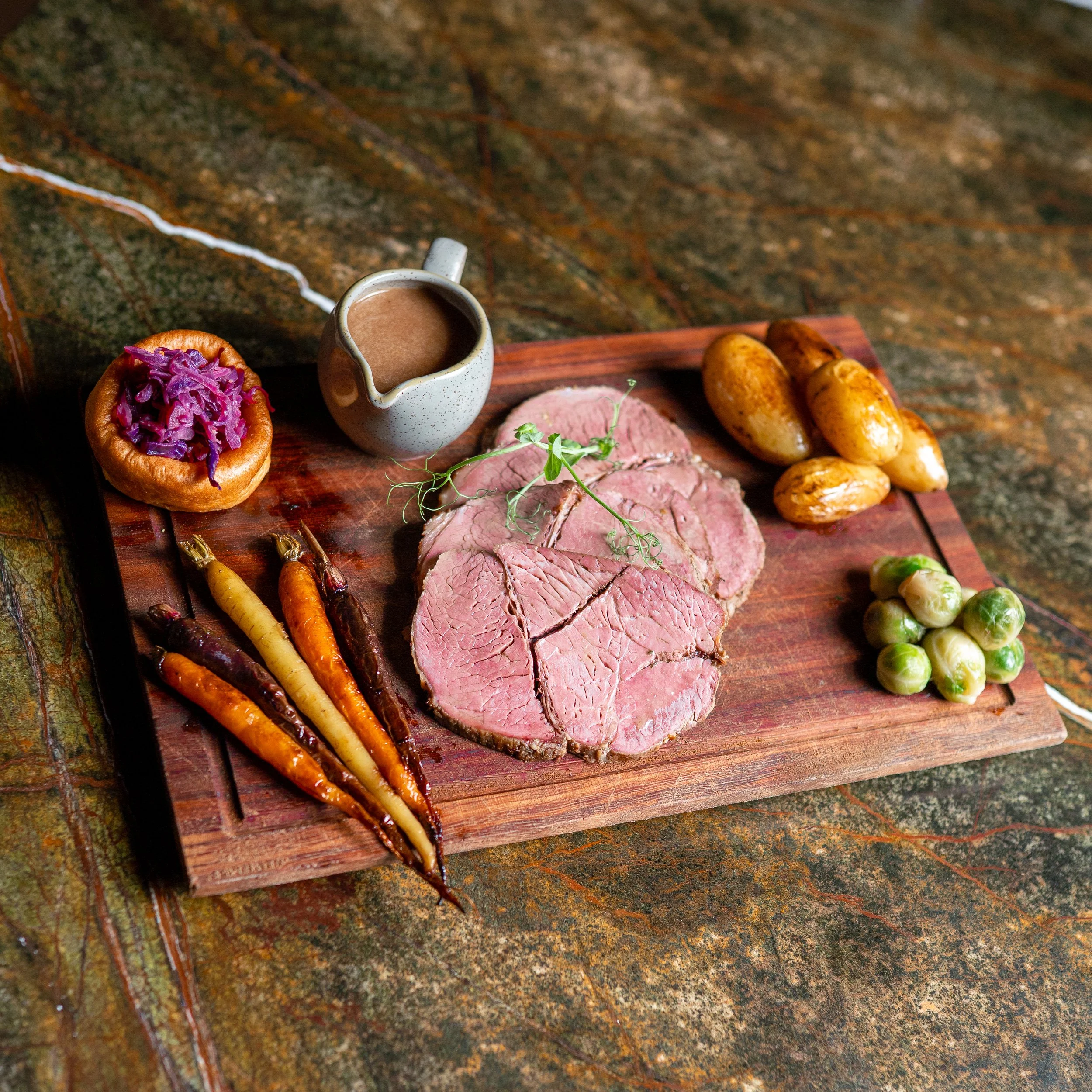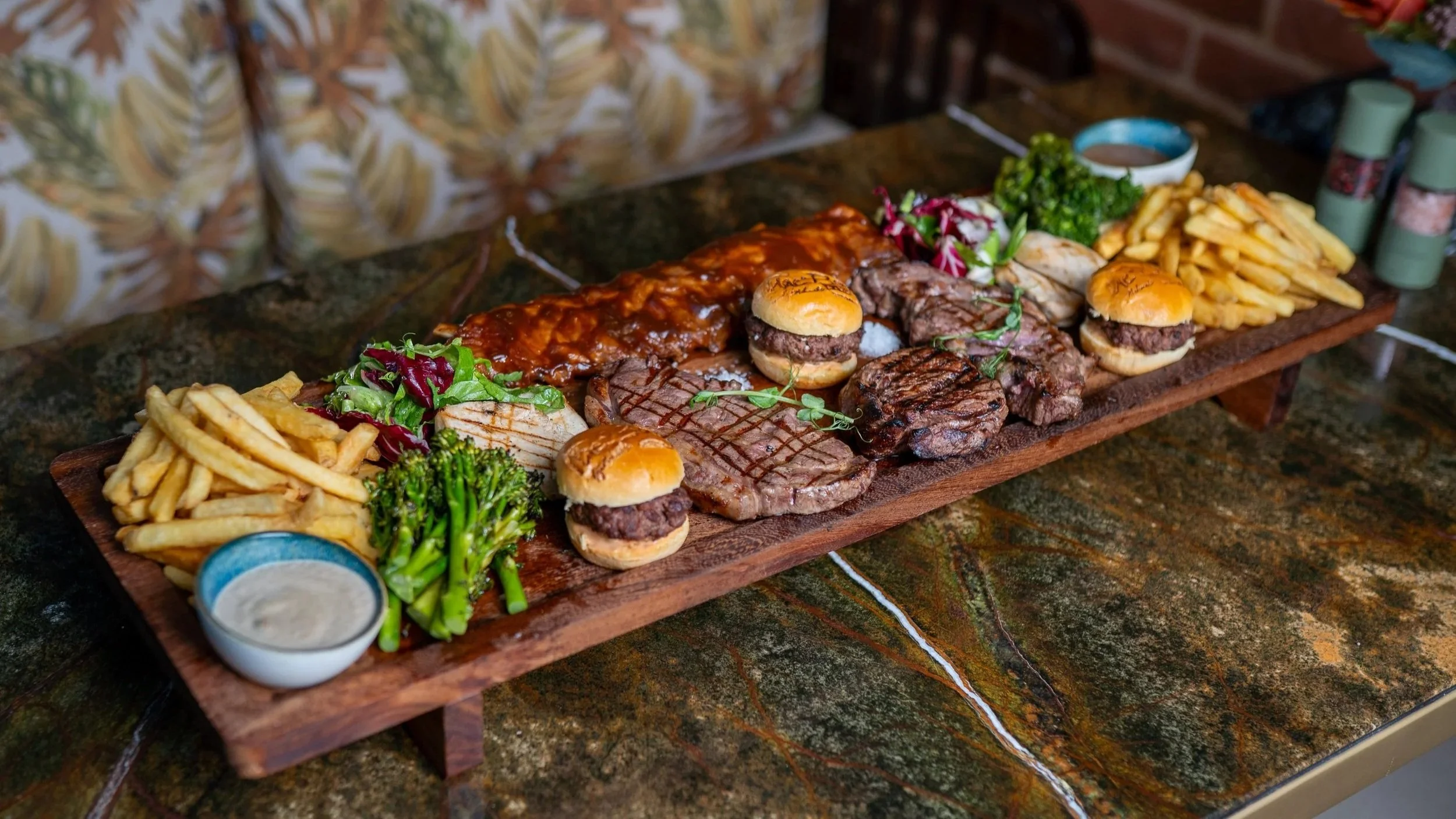 For the ultimate shared experience, gather your group for our show-stopping Festive Platter. This magnificent board is laden with a selection of our finest steaks—sirloin, rib eye, and fillet—alongside BBQ ribs, mini burgers, grilled chicken, and all the trimmings. It's a feast designed for celebration.£130 - Recommended for 6 people